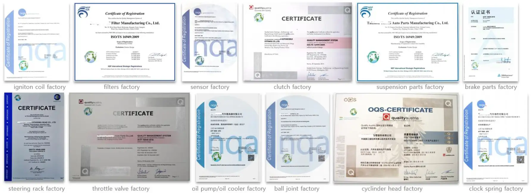 Nuestros puntos fuertes son la calidad constante, plazos de entrega fiables y buena relación calidad-precio. Cumplimos estrictamente con normativas internacionales y contamos con un sistema integral de control de calidad, que cubre desde la selección de materias primas, fabricación, inspección hasta verificación antes del envío. Garantizamos que nuestros productos se adapten a los principales modelos de vehículos del mundo y cumplan los exigentes requisitos de clientes internacionales.